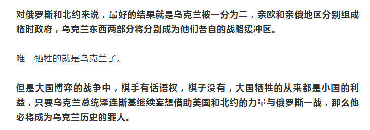 我在戰爭之前就寫過一篇文章説過:俄羅斯一旦動武,烏克蘭的結局就是一分為二。