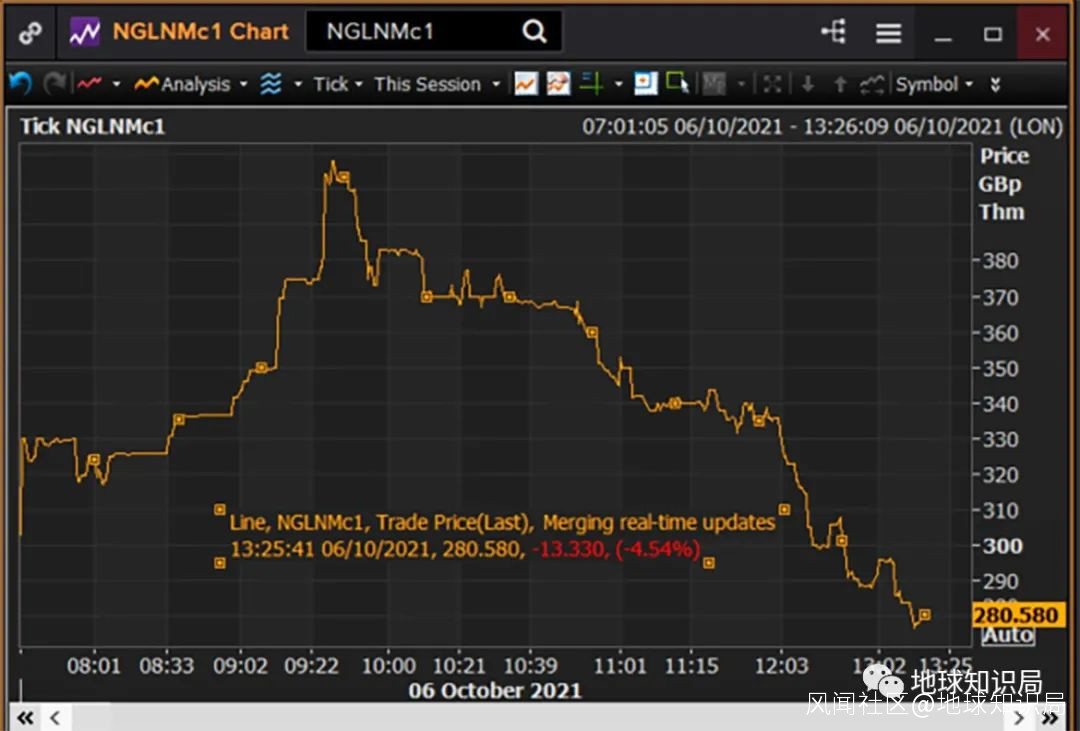 原本一路飆升的天然氣價格在昨日下午出現了回落