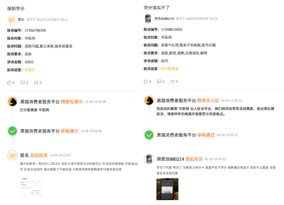 另一項指標來看,華醫網的售後情況似乎有待提升。《港灣商業觀察》發現黑貓投訴上消費者對於華醫網的投訴主要集中在“系統問題”、“售後服務態度差”、“退款難”等方面。