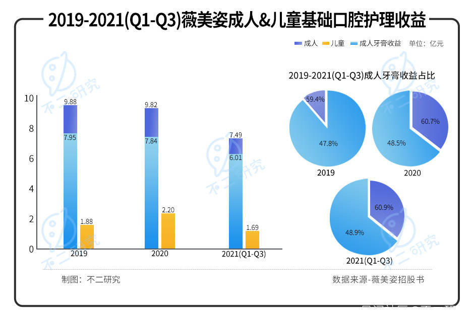 同期,成人基礎口腔護理產品收益分別為9.88億元、9.82億元和7.49億元,佔總營業收入的59.4%、60.7%和60.9%。