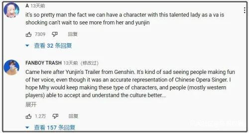 還有一些人認為雖然自己不喜歡這個聲音,因為就像歌劇一樣,只適合在博物館裏;但角色設計整體不錯,還是很受歡迎。甚至有網友跑到CGTN的視頻下面,給京劇視頻點贊留言,聲明自己“came here from yunjin”,短短几天播放量就增了數十萬。