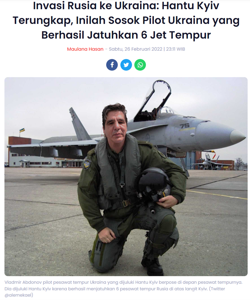 又有流言傳出,“基輔幽靈”真名為弗拉基米爾·阿布多諾夫。