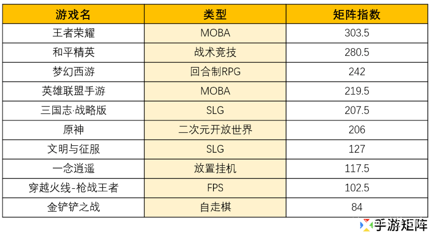 根據七麥數據顯示,騰訊《王者榮耀》和《和平精英》佔了前兩個席位,網易的《夢幻西遊》手遊佔據了第三席。值得注意的是,根據手遊矩陣研究院的指數顯示,騰訊如今在國內市場的份額比例越來越大,更重要的是,騰訊長期上榜的遊戲都有了一個共性,就是電競趨勢,無論是老牌拳頭產品《王者榮耀》《和平精英》《穿越火線-槍戰王者》,還是去年上線的熱門大作《英雄聯盟手遊》和《金剷剷之戰》,電競賽事生態都非常成熟,同時這些產品大多都有自己的職業聯賽,所以從這種情況來看,這些遊戲都有着非常強的生命力和海量的用户羣體,所以對於這類遊戲來説,只要電競生態形成,後續的走勢會愈加穩定。