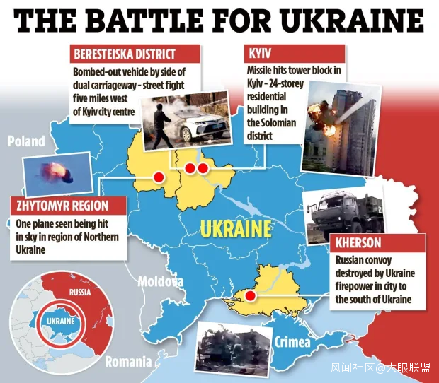 俄羅斯入侵後,炮彈如雨點般落到烏克蘭各地——首都基輔的戰鬥持續到第四天。