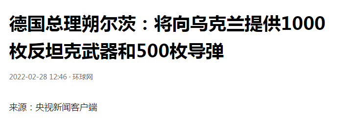 2月26日,德國總理朔爾茨表示:將向烏克蘭提供1000枚反坦克武器和500枚“毒刺”級地對空導彈。