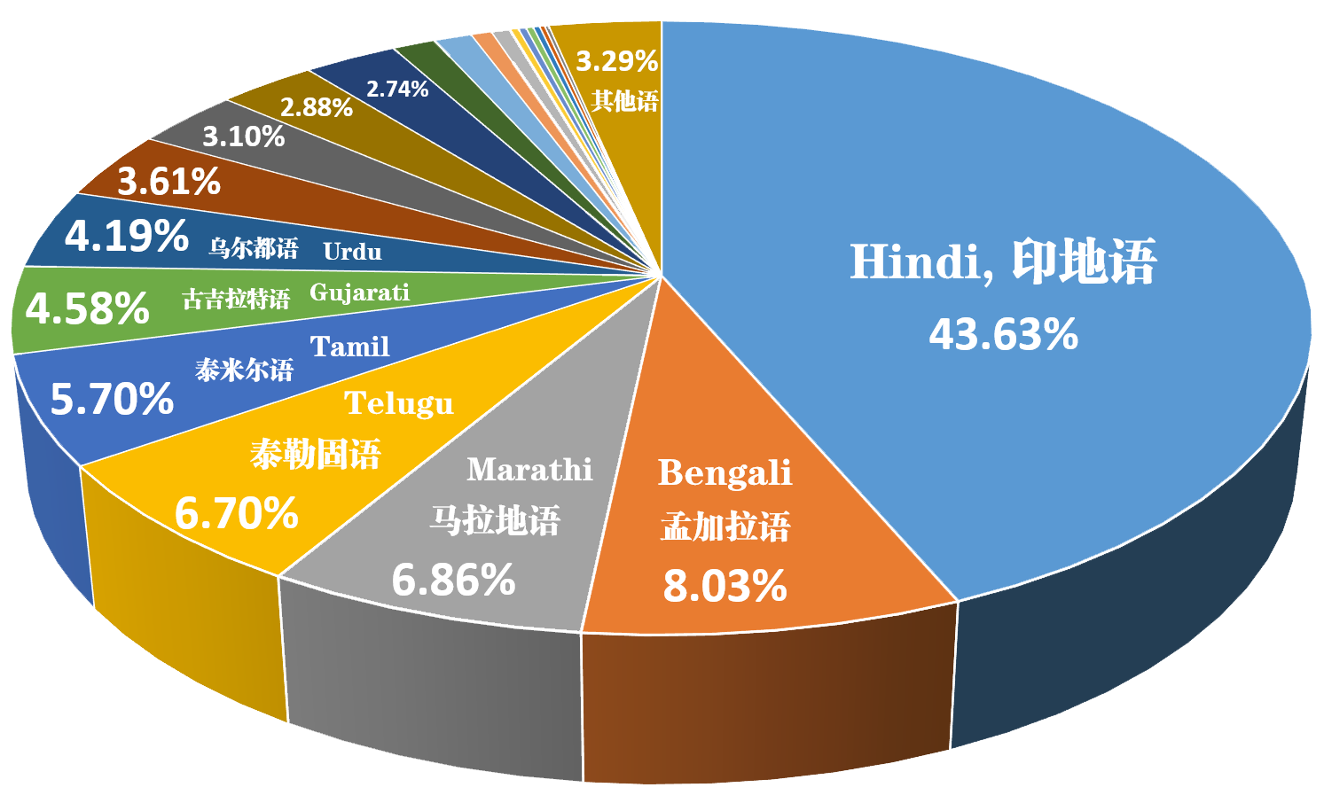 2011年印度普查顯示印度本地官方語言繁雜,印地語尚未超過半數 | 製圖:梵華