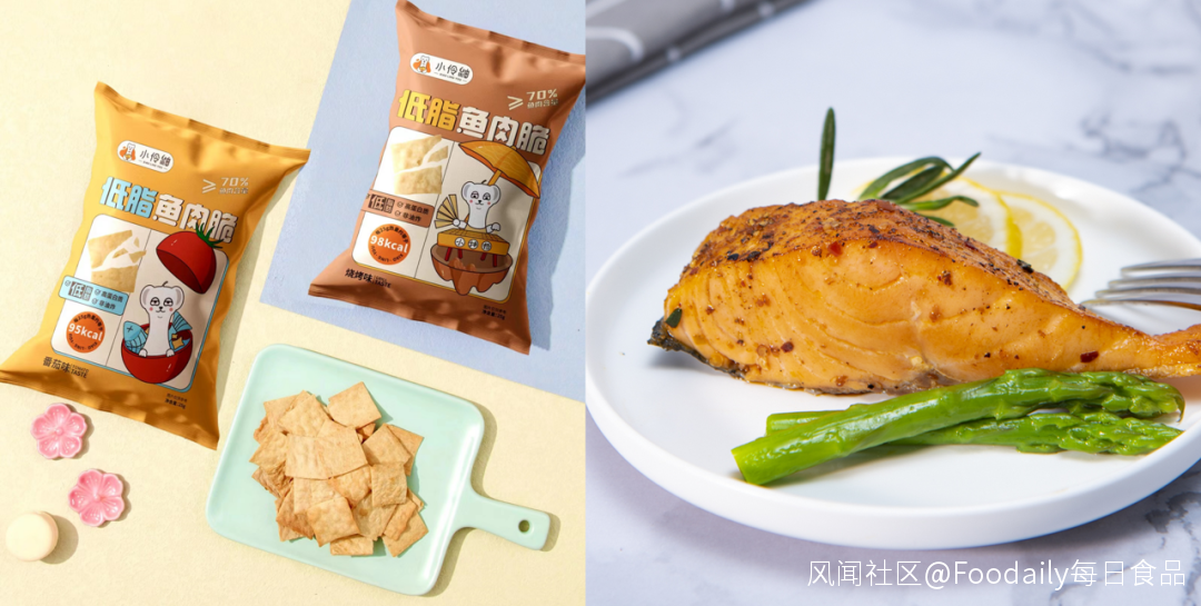 海洋蛋白方面,小伶鼬選用深海帶魚魚肉為主要原料,全程烘焙無油炸,每包產品含有38%的蛋白質,脂肪含量減少98%,打破薯片固有印象,拓寬了肉類食品的食用方式與場景;提供高蛋白攝入新選擇;海派説甄選進口智利三文魚,鎖鮮保鮮及殺腥滅菌技術保留三文魚新鮮與營養,每包蛋白含量54%以上,為消費者提供海洋蛋白攝入新選擇。