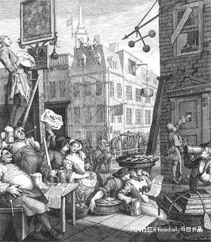 1751 年威廉·霍加斯 (William Hogarth) 的啤酒街,