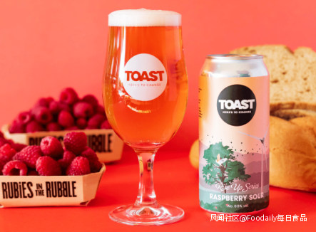 Toast Raspberry Sour Beer是一款帶有覆盆子香氣的0.5% vol啤酒,用剩餘閒置的新鮮麪包來代替所需原料中三分之一的麥芽大麥。口感酸爽,可作為夏季完美的提神酒飲。