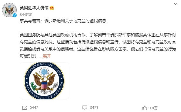 美國駐華大使館則發佈了抨擊俄羅斯的長篇大論《事實與謊言》,與俄羅斯官微在線互懟。