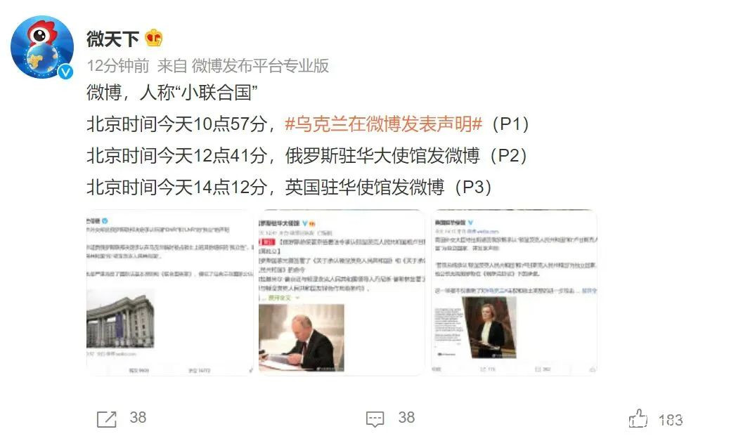 如今再看烏克蘭在中國社交平台上發表的聲明,再看美國、英國等國在中國互聯網上賣力表演,其實一切早就有跡可循。