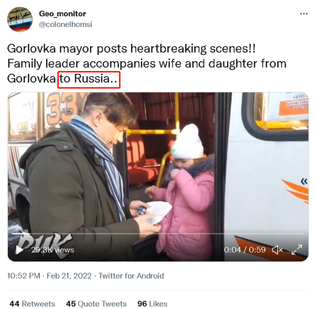 根據《環球時報》報道,這個視頻最早於2022年2月21日出現在俄羅斯的社交網站VK上,當時俄羅斯還尚未對烏克蘭動武,後來發表在推特上熱度也不高。