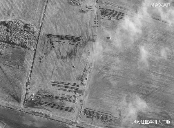 美國衞星圖像公司Maxar在25日發佈的衞片,在距離烏克蘭邊境只有30公里的白俄羅斯霍伊尼基地區,部署了大量直升機。