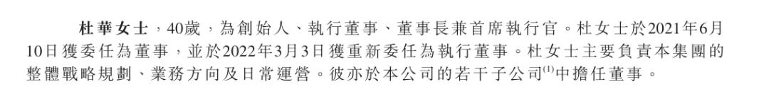 公司創始人杜華擔任執行董事、董事長兼首席執行官,主要負責整體戰略規劃、業務方向及日常運營。