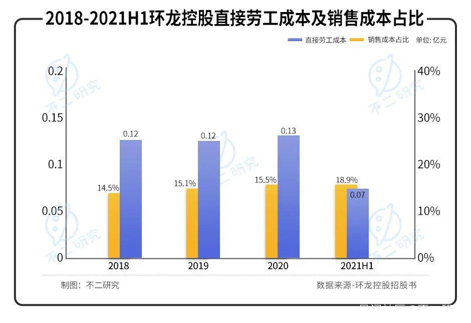 成本方面,據招股書顯示,2018-2020年,以及2021上半年,環龍控股的直接勞工成本分別佔銷售成本約14.5%、15.1%、15.5%和18.9%。