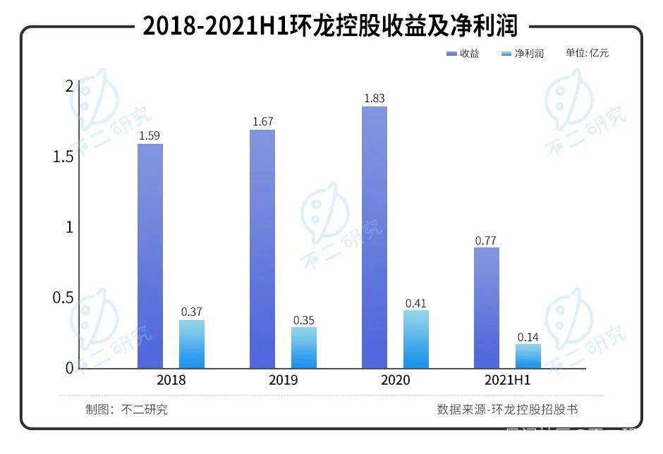 據招股書顯示,2018-2020年,以及2021上半年,環龍控股的收益分別為1.59億元、1.67億元、1.83億元和0.77億元。淨利潤分別為0.37億元、0.35億元、0.41億元和0.14億元。