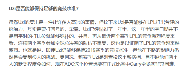 Uzi復出消息剛剛發佈不久,網上就有“Uzi是否能夠保持足夠的競技水準?”的疑問。