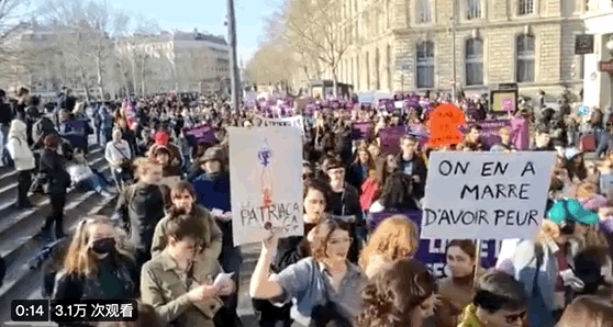 3月8日國際婦女節當天,數千人聚集在巴黎進行遊行示威,要求當局採取措施打擊基於性別的暴力和性別不平等現象。