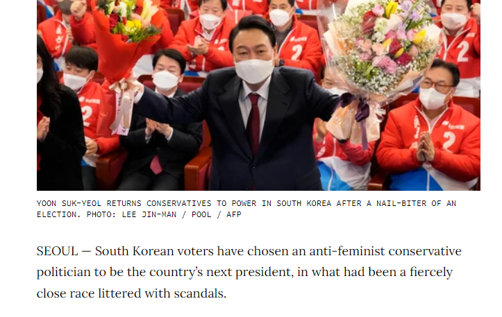 韓國選民,選出了一位反女權的保守政治家當他們的下任總統。