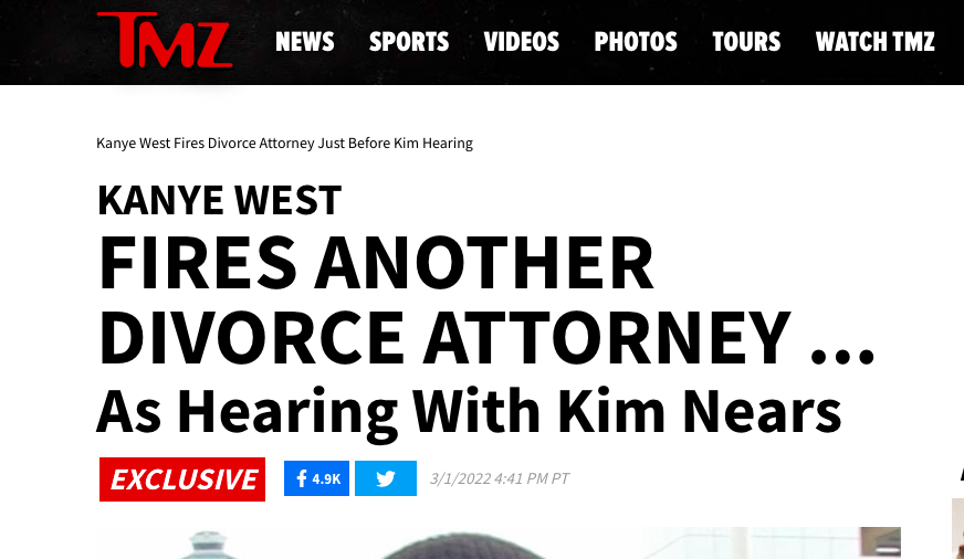 美國著名八卦網站《TMZ》:坎爺更換律師