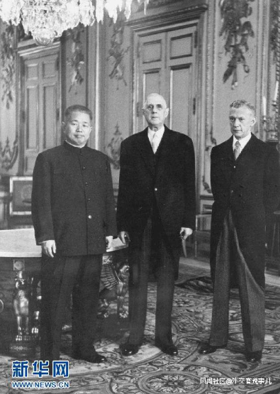 中華人民共和國駐法國第一任大使黃鎮(左)和