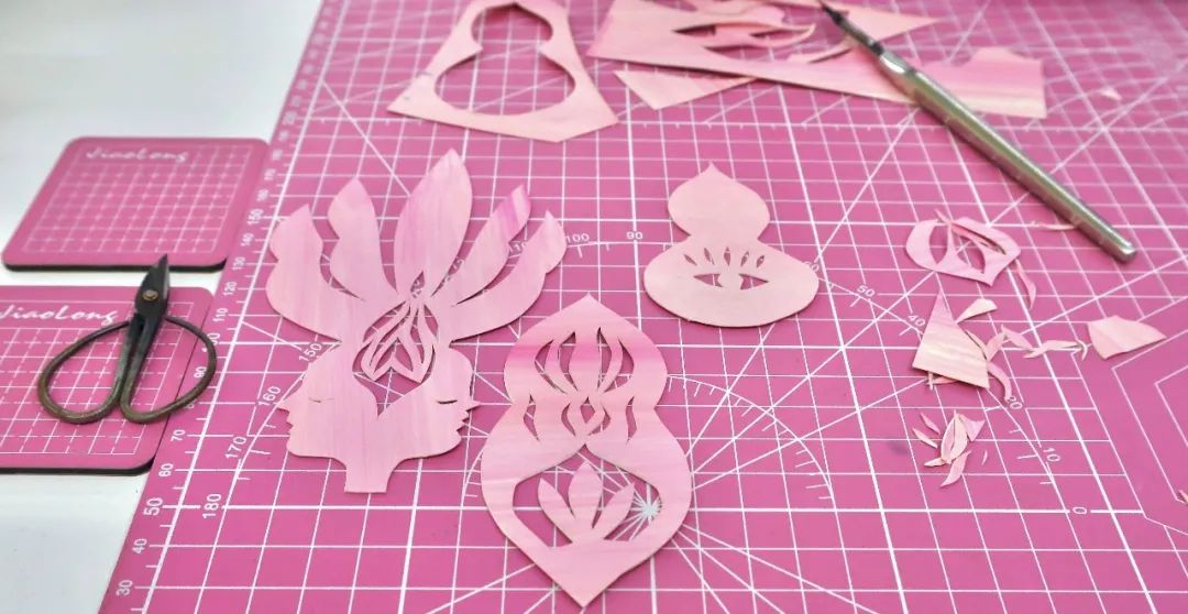 顧不上劣質的塑料在手指上摩擦出的不適感的陳粉丸,悶下頭想辦法把剪紙作品附着在鏡框上,裝扮成有點滑稽的裝飾鏡。