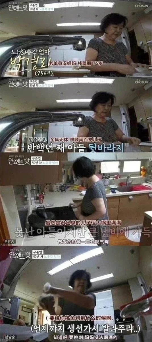 綜藝中,母親照顧兒子的一日三餐,每天做好飯才會叫兒子起牀。吃魚的時候,母親幫具俊曄挑魚刺。