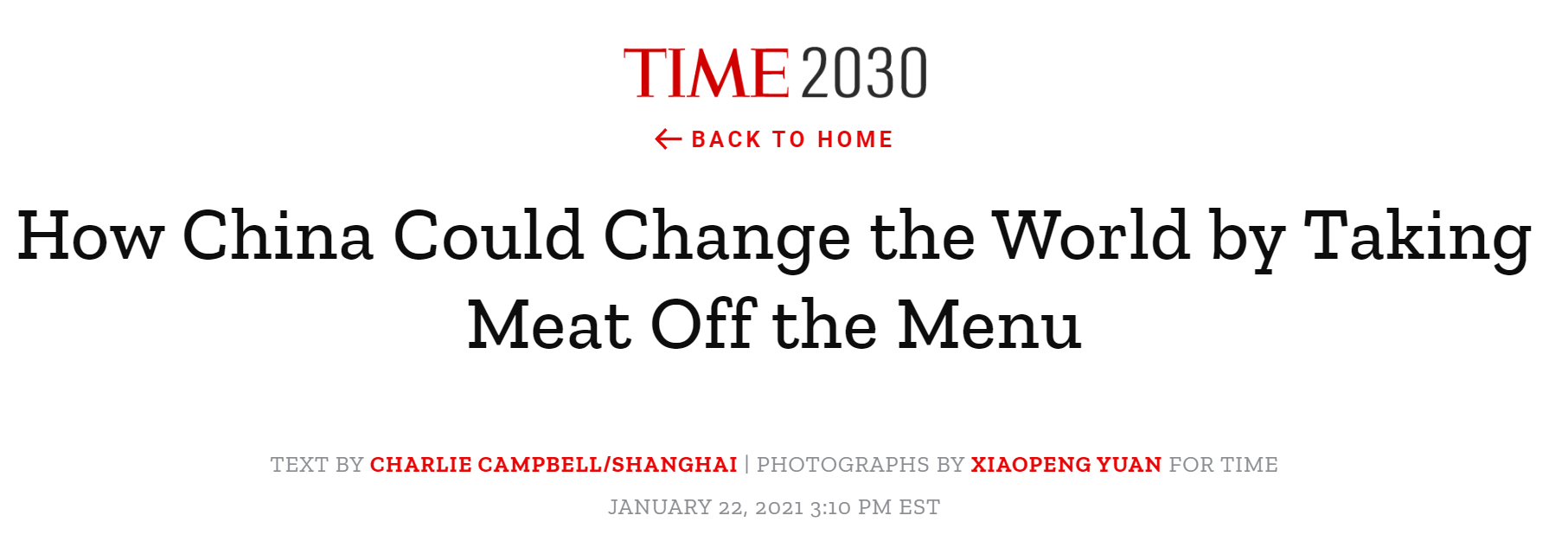 2021年1月22日,美國《時代週刊》刊文“中國人若不吃肉將怎樣改變世界”,人均肉消費量高於中國的西方卻指責中國人吃肉太多,簡直是奇葩邏輯 | 圖源:time.com