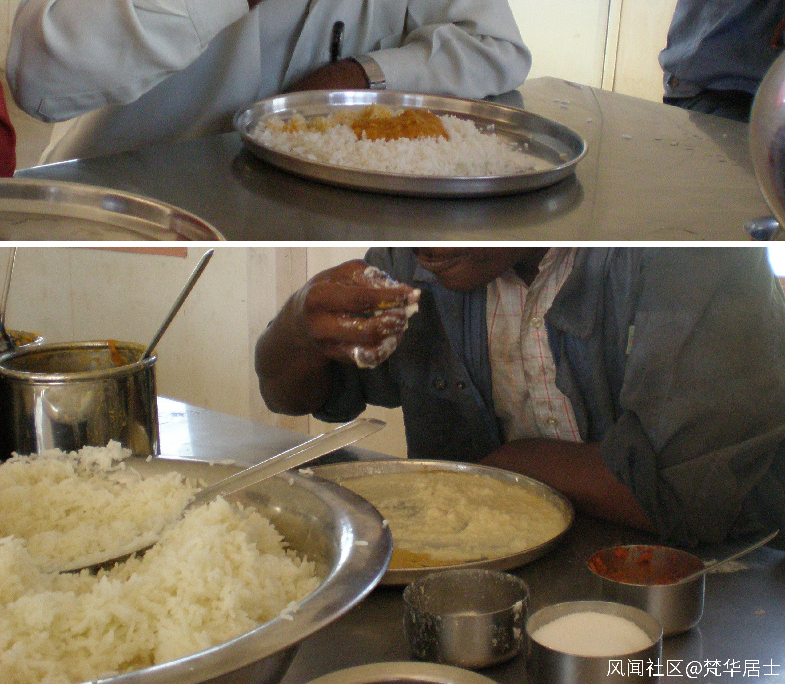 **第一個例子:**以前在印度賣工程機械設備的過程中,我常常需要和工程師一道去設備施工的現場走訪客户或者檢修設備。這些項目工地往往都遠離城鎮,住宿和吃飯都在項目駐地,條件一般都很差,但是吃住都是免費的。工地食堂提供給印度本地工人的餐食一般都是咖喱或自制酸奶配米飯,這是印度當地貧民非常常見的餐食,成本極為低廉。