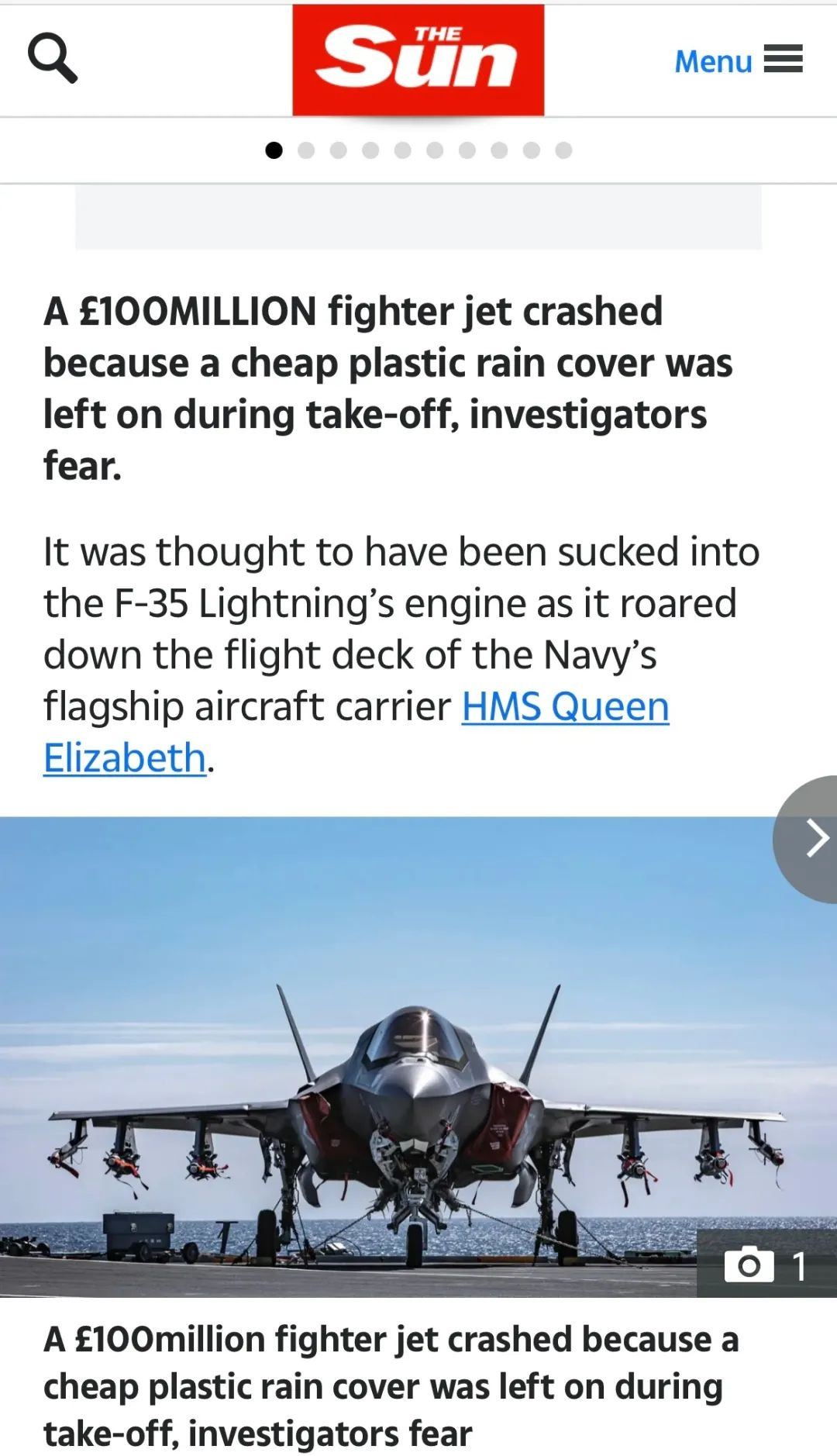 ▲《太陽報》此前關於英國F-35B墜海的“神準”報道