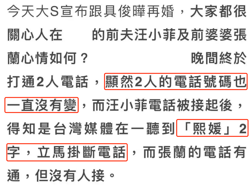大S結婚當天,灣灣媒體火速給她前夫打電話,汪小菲一聽熙媛,嘎噔掛了。