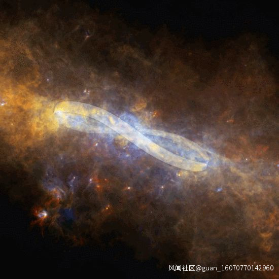 【文盲(Wenmang)注:太空望遠鏡發現:銀河系灰塵內核神秘存在一個由過冷物質構成的巨大“扭曲緞帶”。僅觀測到這個“扭曲緞帶”的上部結構,寬度就達到600光年。零下258攝氏度,其中較温暖的區域呈現藍色,而較寒冷的區域則呈現紅色。】