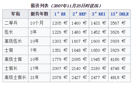 維基上給出的法外士兵薪資表,另外還有跳傘補助、住房補助