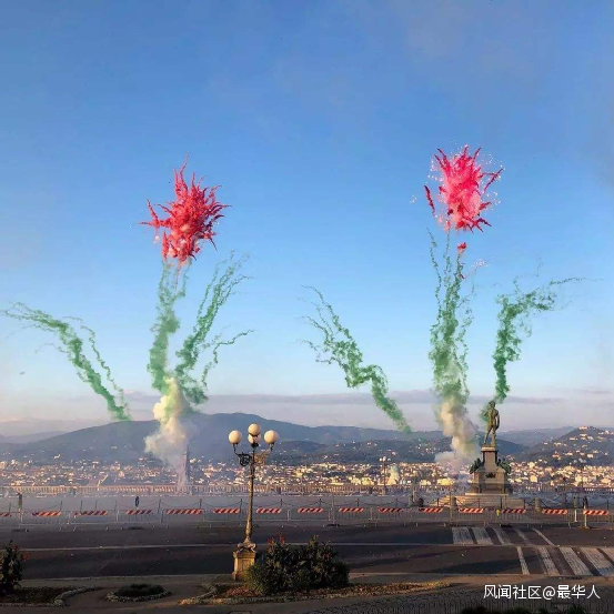 在意大利佛羅倫薩的米開朗基羅廣場,他以作品《空中花城》,致敬這座古老的文藝復興之城。