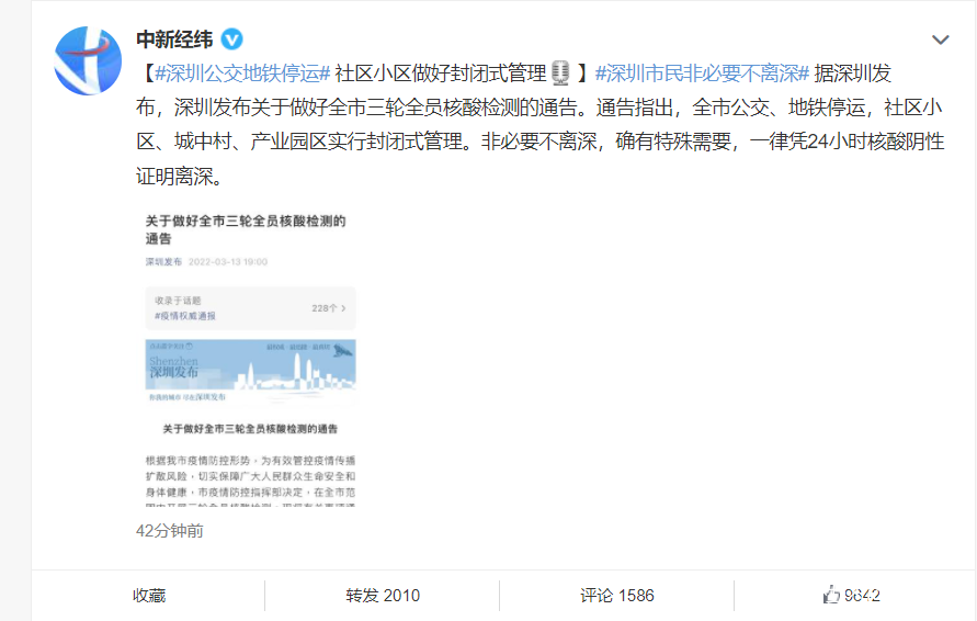 深圳已經把公交地鐵都停了,馬上要開始第三輪全員核酸檢測了: