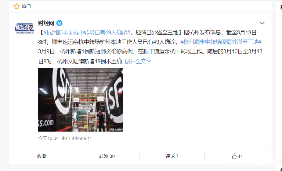 杭州説光是一處快遞轉運點就有四十多名工作人員確診: