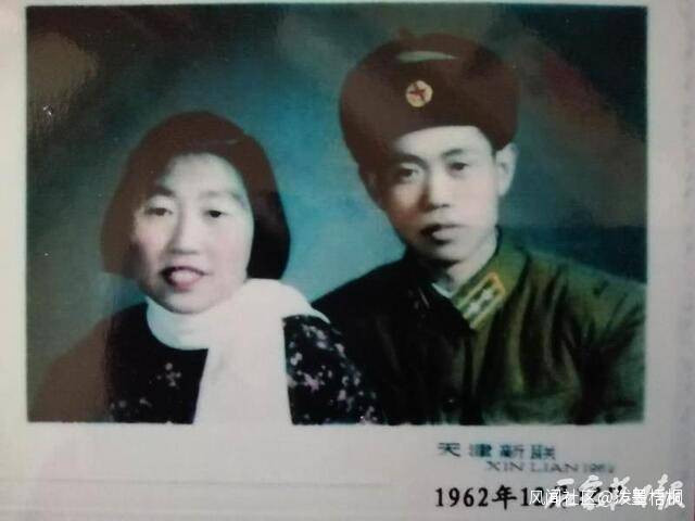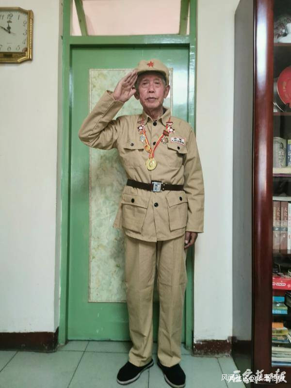 嶽宜賢穿上軍裝戴上紀念章敬軍禮。