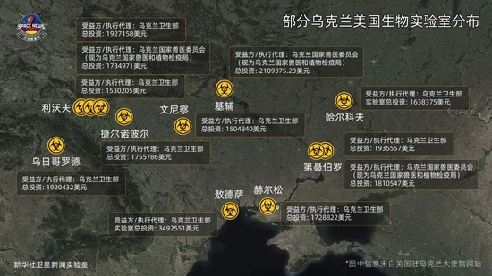 新華社衞星新聞實驗室定位的12處美國生物實驗室,分佈於烏克蘭的廣袤國土,美國駐烏克蘭大使館網站公佈的信息顯示,美國共計投資超過2400萬美元。