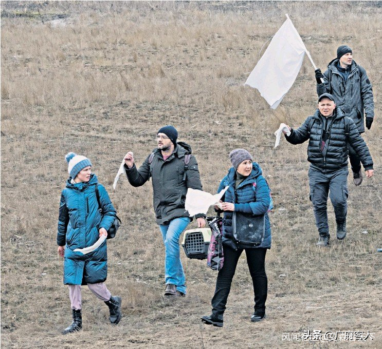 最近幾天,成千上萬的家庭逃離了布查,其中許多人乘坐的車隊裝飾着白旗,上面寫着"車內有兒童"的標語。