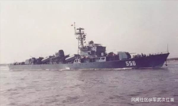 556號屬於053H1型導彈護衞艦,該艦裝備了2座79式雙聯裝100毫米主炮,4座76式雙37毫米高炮。2座雙聯裝反艦導彈,可發射低空掠海飛行的“上游”1號甲導彈,這也是當時中國海軍最強的反艦武器配置。