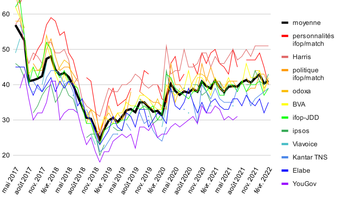 ● 過去五年來馬克龍的支持率變動 / Wikipedia
