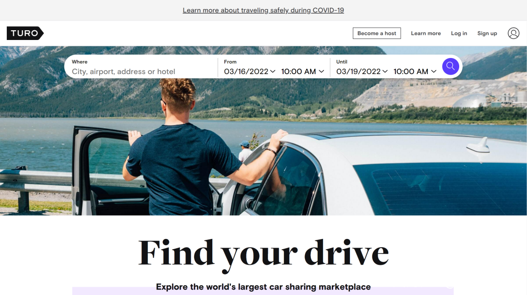 美國點對點汽車共享公司Turo官網,該公司提供了一個車主可以租用汽車的平台。