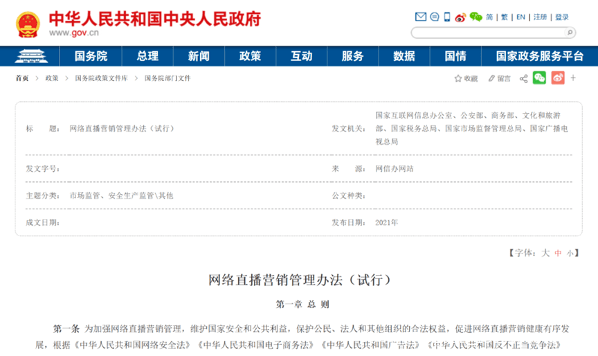 比如中國廣告協會關於《網絡直播營銷行為規範》、以及國家廣播電視總局《關於加強網絡秀場直播和電商直播管理的通知》和《網絡直播營銷管理辦法(試行)》以及其他相應政策的出台。