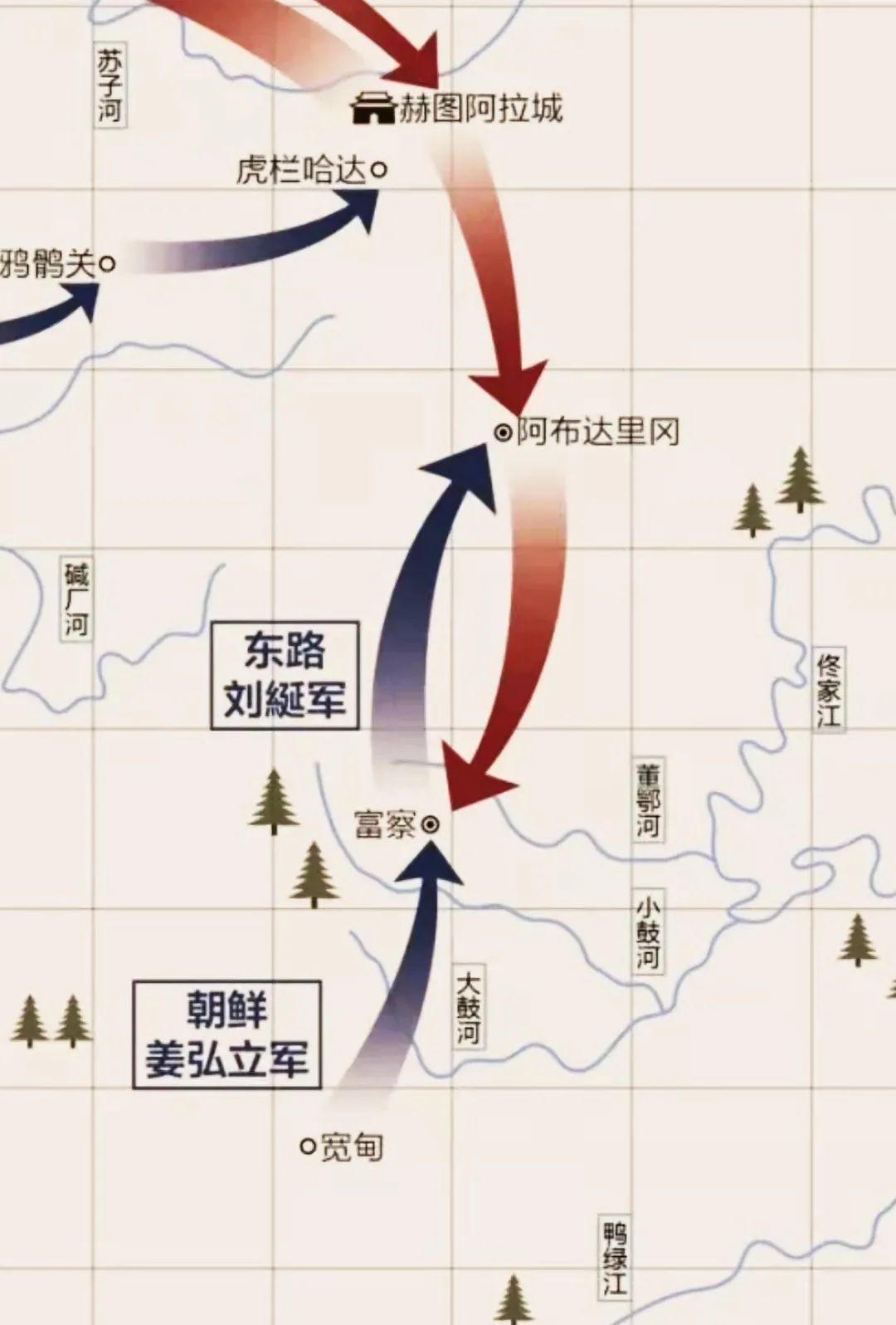 為了加快行軍速度,他決定親率自己麾下的數千親衞家丁騎兵急速進軍,而把糧秣不足、行軍遲緩的一萬三千朝鮮軍留在後邊慢慢走。