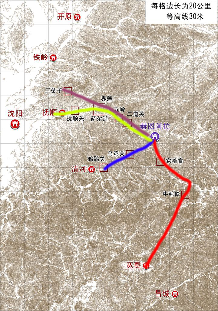 出遼東邊牆通往赫圖阿拉的四條道路,正是後來四路明軍進軍的路線