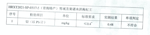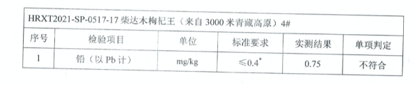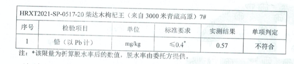1、檢測結果:25%枸杞鉛超標,30%二氧化硫超標