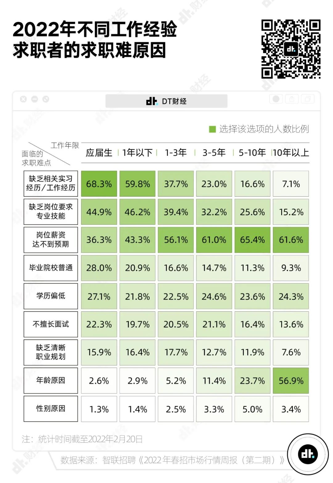 剛出校門的應屆生、工作一兩年的職場新人、五年以上的“職場老手”,他們對求職各有考量,求職焦慮也各不相同。DT君結合智聯招聘發佈的《2022 年春招市場行情週報(第二期)》對求職者的求職焦慮進行分析,總結出以下四個趨勢。