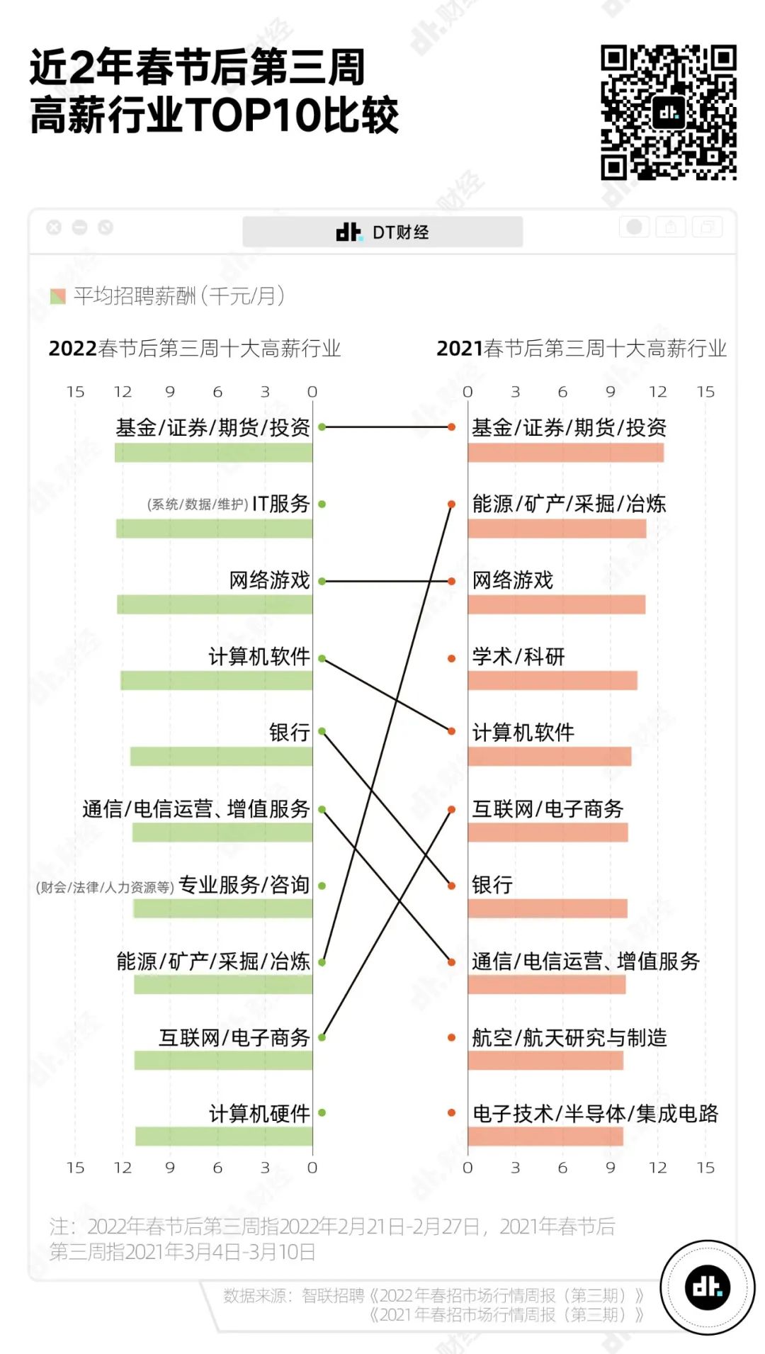分析行業優劣時頭頭是道,真的上手找工作時,工資還是很重要。老話説得好,沒有物質基礎,再好的理想也是空談。DT君進一步總結了今年春招市場中高薪行業的分佈情況。