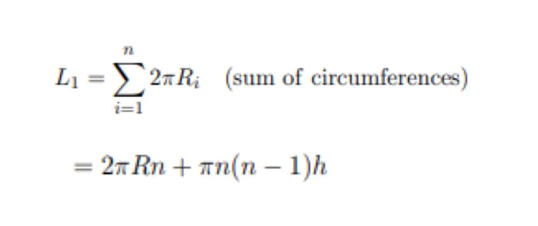 那麼,想要算出紙的總長度L1,我們只需要算出每一層圓的周長,再把它們加起來就行了。是不是非常簡單。