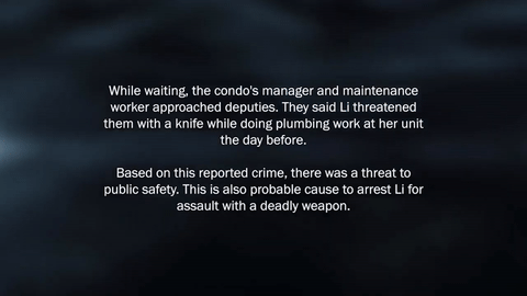 警方報告稱,當天執法等待後援時,警方得知前一天,Li曾用刀威脅公寓樓的經理和一名維修工人。